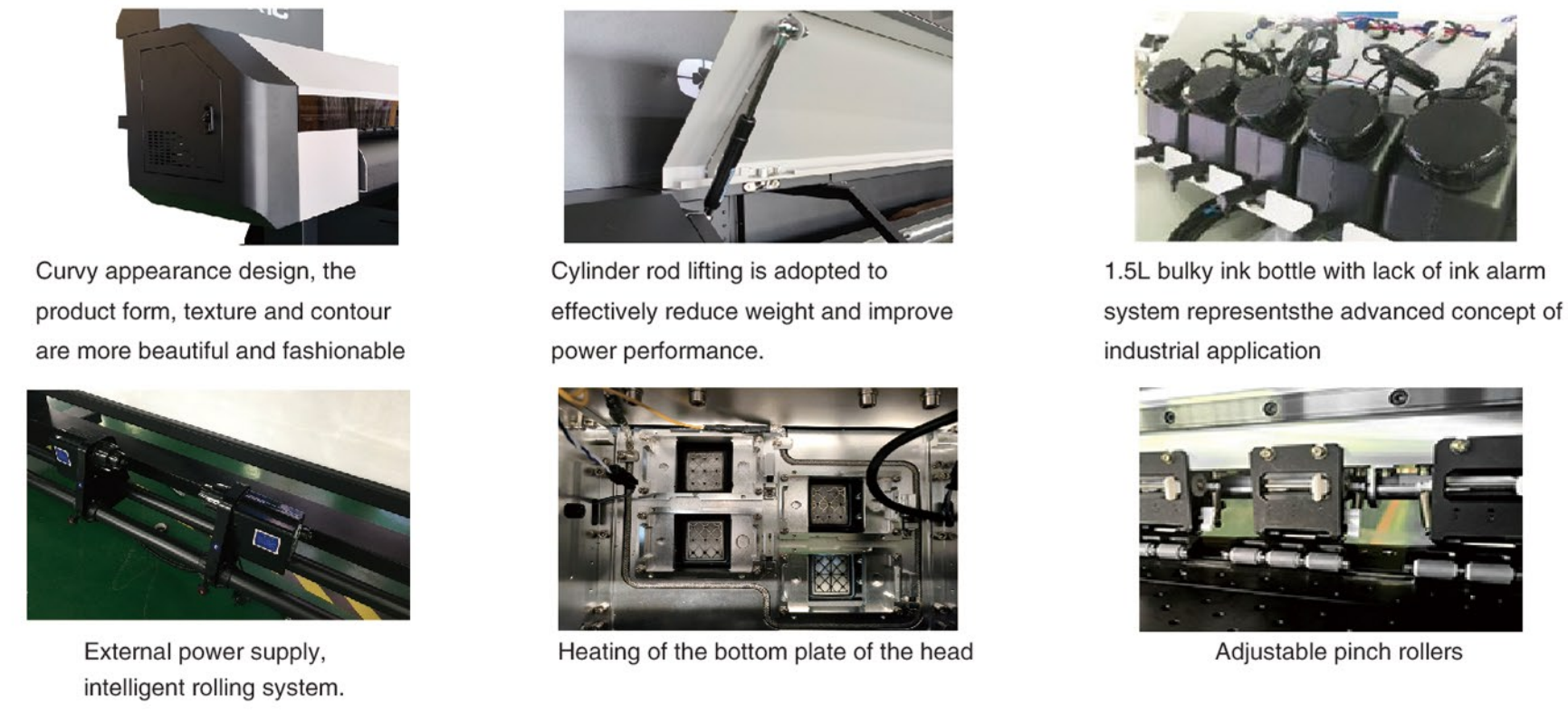 One machine for multiple printing solutions under different color modes,can meet requirements from different customers .It can also replace some high-end eco-solvent printers which can be efficient and environmental friendly.